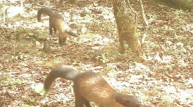 有一次,一只公黄喉貂带着母貂在林子里溜达。阳光洒在身上,俩家伙悠哉悠哉,还不忘撒点气味标记地盘。突然,公貂耳朵一动,像是听到了啥动静,立马停下来,竖起耳朵仔细听。